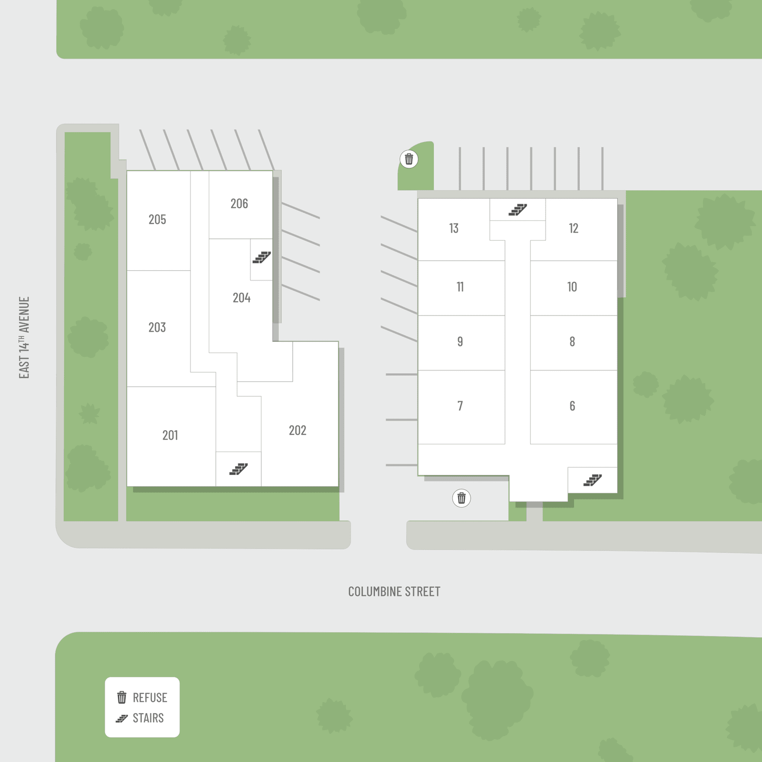 Select a floor plan or bedroom count to view those units on the overhead view on the site map. If you need assistance finding a unit in a specific location please call us at 303-837-9551 TTY: 711.
